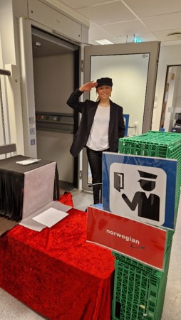 For å komme ombord i flyet må man gjennom sikkerhetskontrollen, og både dokumenter og kofferter ble selvsagt sjekket her.