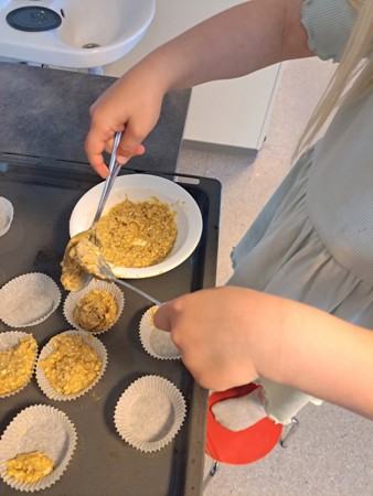Vi måtte undersøke saken og dro på tur for å plukke løvetann. Deretter rensket vi dem og fant en oppskrift for løvetannkjeks. Som sagt så gjort, løvetannmuffins ble det, og gode var de 😄